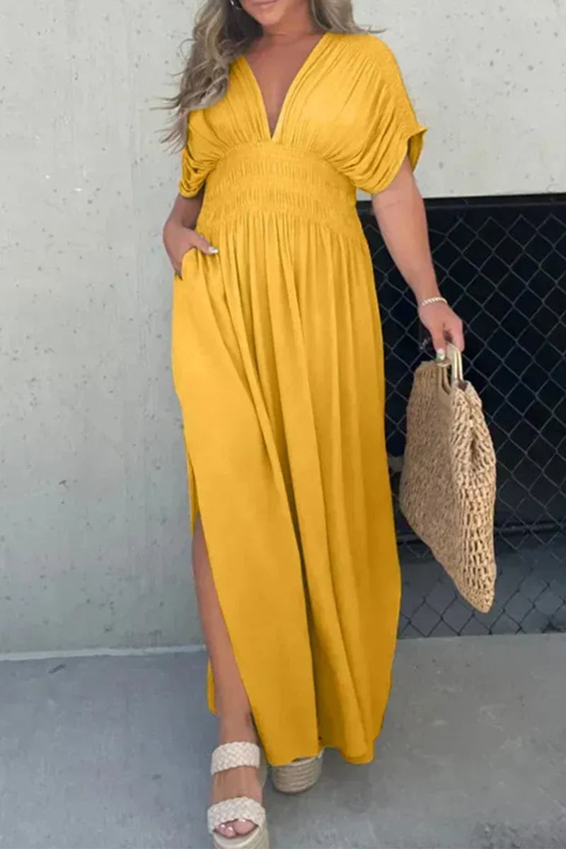 Met onze Effortless Chic Zomerjurk stap je naar buiten met de wetenschap dat je klaar bent voor elke gelegenheid. De korte mouwen houden je koel en de vrij vloeiende stof zorgt ervoor dat je met gratie en gemak door de zomerdagen heen zult gaan.